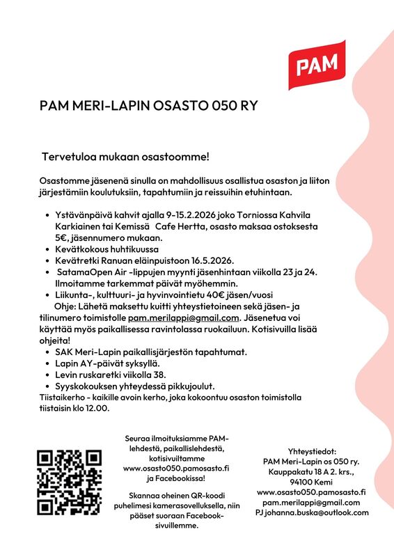 PAM Meri-Lapin osasto 050 ry:n esite 2026